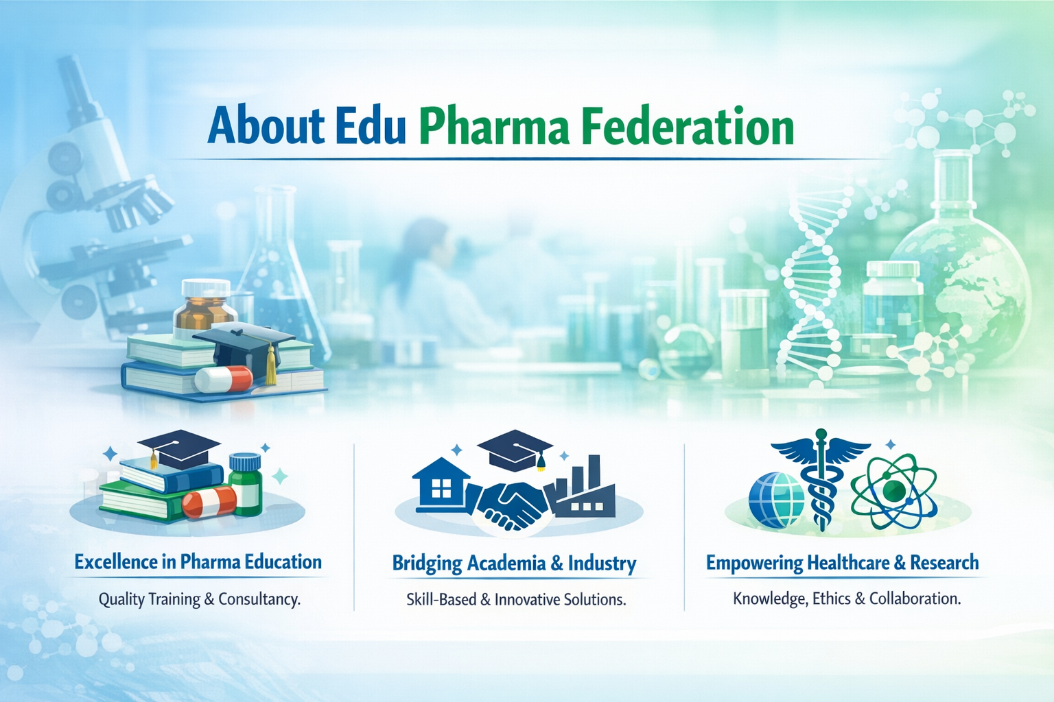 - Edu Pharma Federation promotes excellence in pharmaceutical education, research, and regulatory practices through quality training and consultancy.